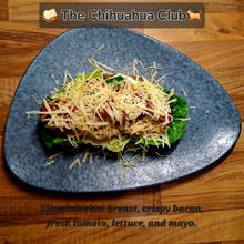 Sliced chicken breast, crispy bacon, fresh tomato, lettuce, Cheddar cheese and garlic mayo